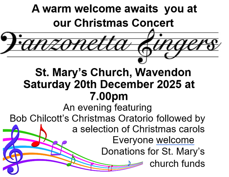On Saturday 20th December at 7pm, The Canzonetta Singers will be holding their Christmas Concert in church. See details below: