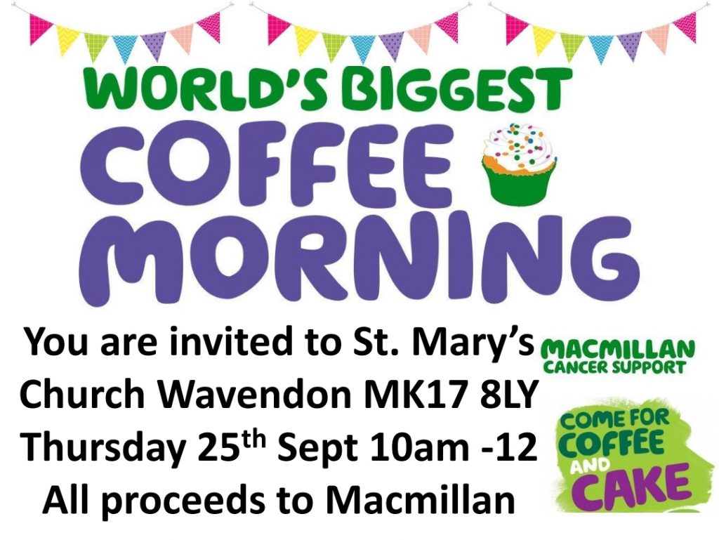 On Wednesday between 8.45am and 10.30am during termtime we host a coffee morning in St Mary’s CofE Primary School on the new Eagle Farm estate, Wafandun Lane MK17 7AA – location here.
